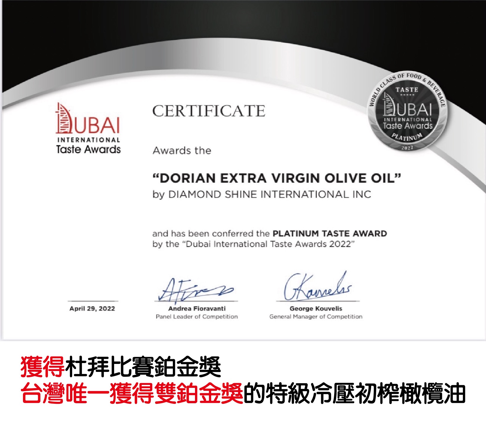 DORIAN 特級初榨橄欖油由希臘拉科尼亞農業合作社聯合會(Agricultural Cooperatives’ Union – Laconia Greece S.A.) 生產,並由光總企業有限公司(Diamond Shine International INC.) 進口至台灣。