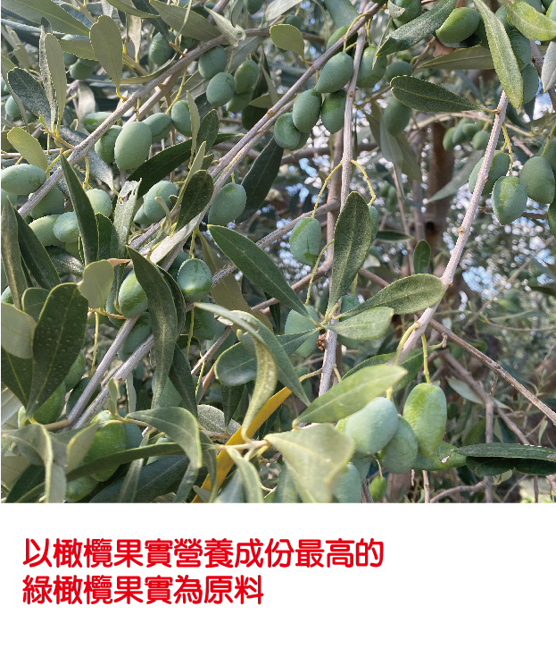 希臘Laconia 地區含有豐富礦物質的岩質土壤,橄欖油味道清香鮮郁,我們是採用橄欖營養成分最高的綠橄欖果實為原料。